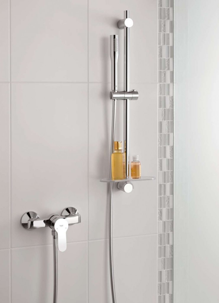 - univerzálny upevňovací systém vhodný ku všetkým štandardným sprchovým hadiciam