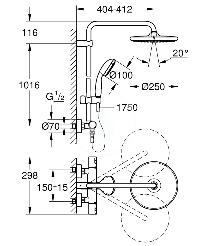 - priemer sprchovej hlavice Ø 250 mm