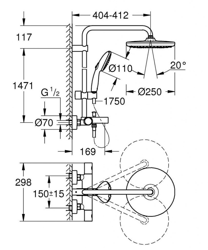 - posuvný držiak ručnej sprchy
