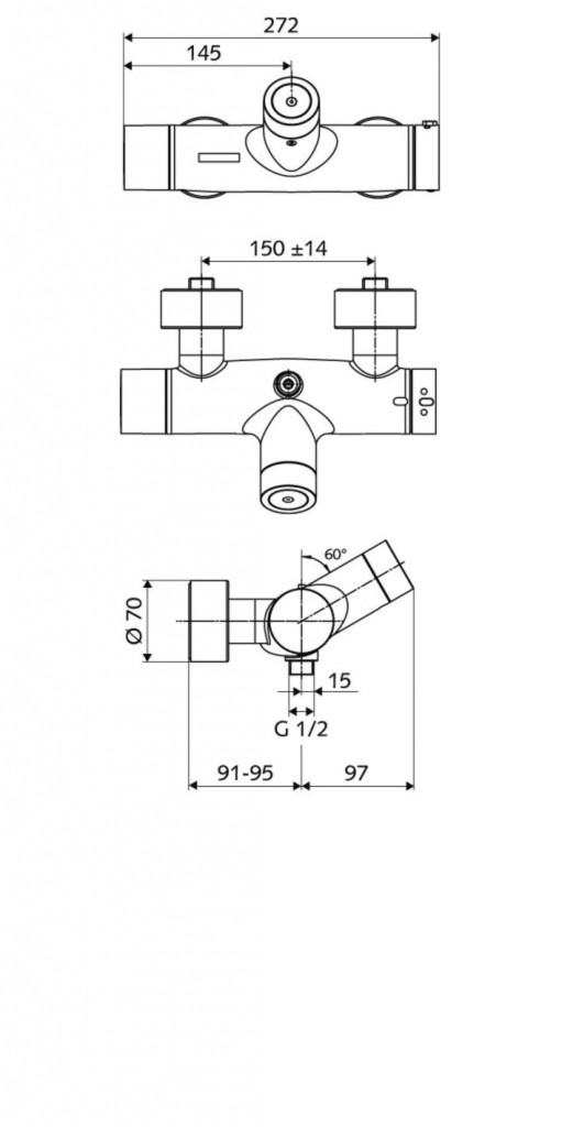 - termostatové vložka podľa EN 1111 s nastaviteľnou / uzamykateľnou teplotou 38 ° C a bezpečnostným zamykaním pre prípad poruchy studenej vody