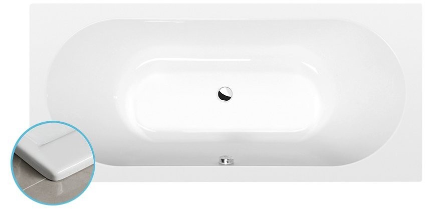 Vaňa s pohodlne tvarovanými stenami na opretie chrbta na oboch stranách a odtokom umiestneným uprostred.
