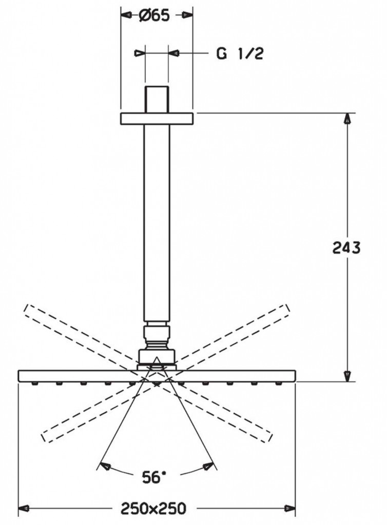 hlavová sprcha, mosadz, štvorcová 250 x 250 mm