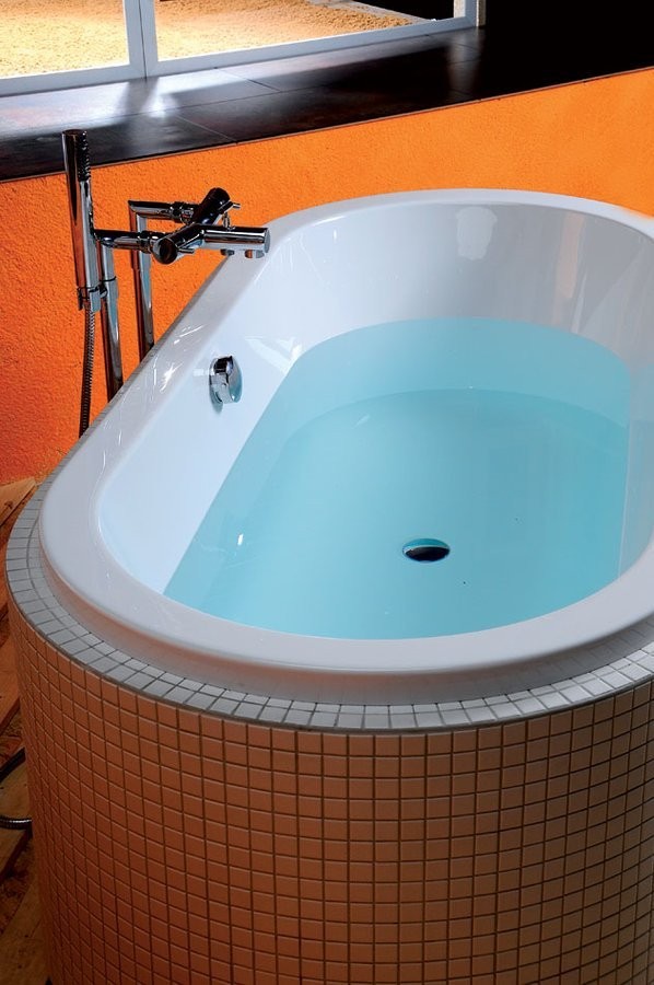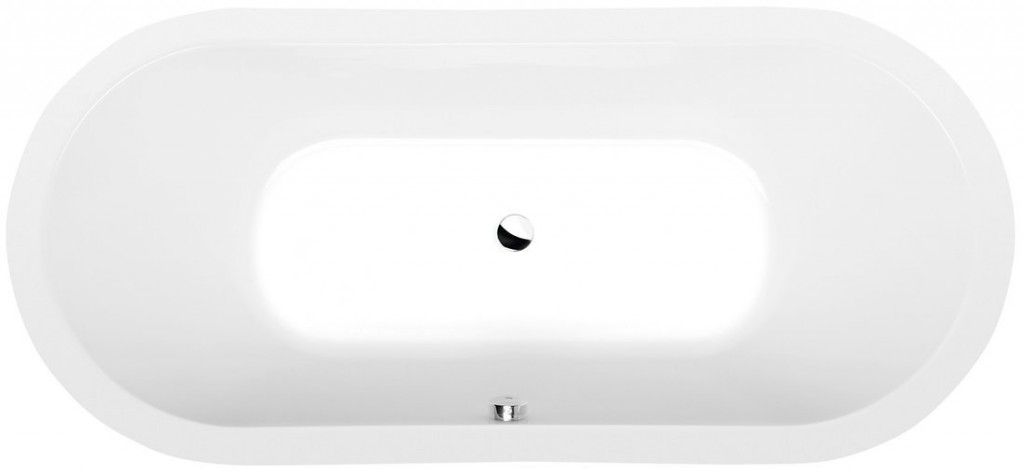 Vaňa s pohodlne tvarovanými stenami na opretie chrbta na oboch stranách a odtokom umiestneným uprostred.