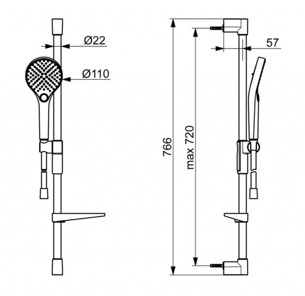 - s posuvným držiakom ručnej sprchy a mydelničkou