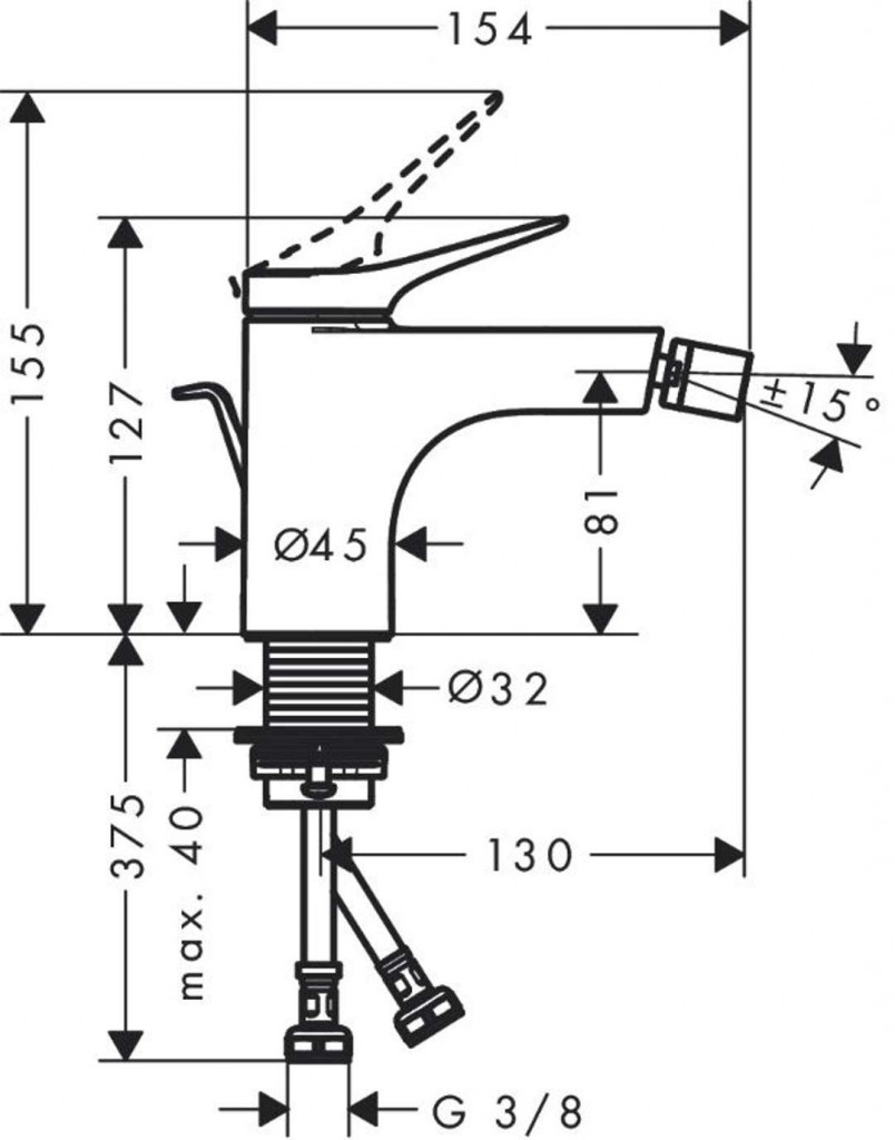 Vivenis Páková bidetová batéria s odtokovou súpravou a tiahlom