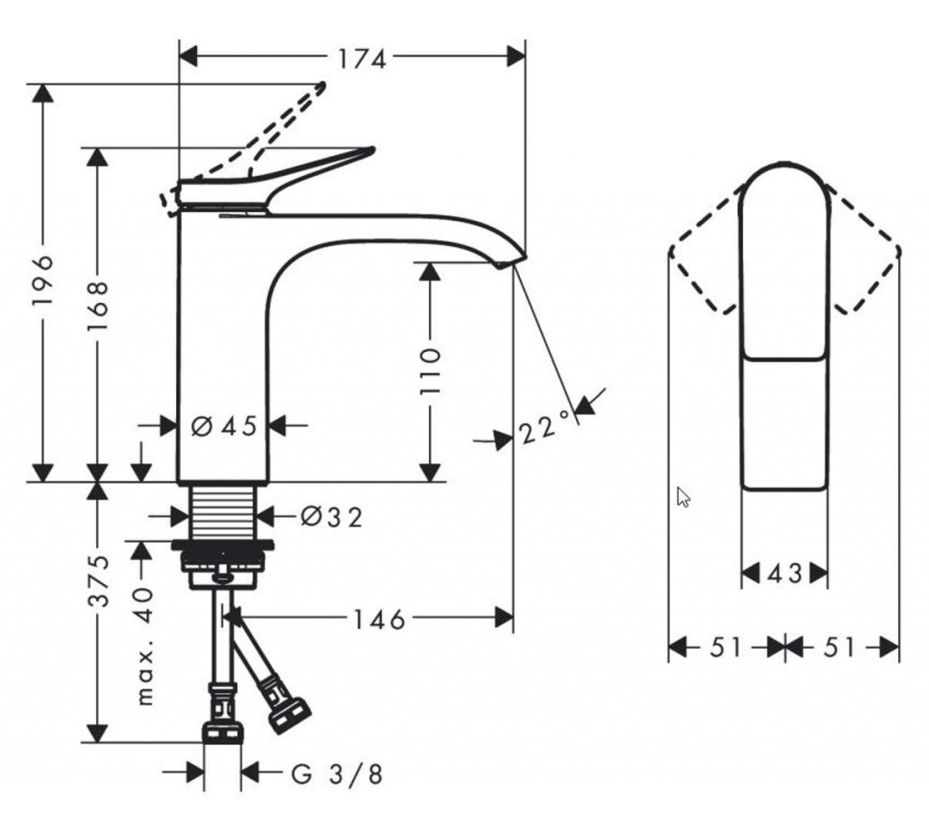 - dĺžka výtoku: 146 mm