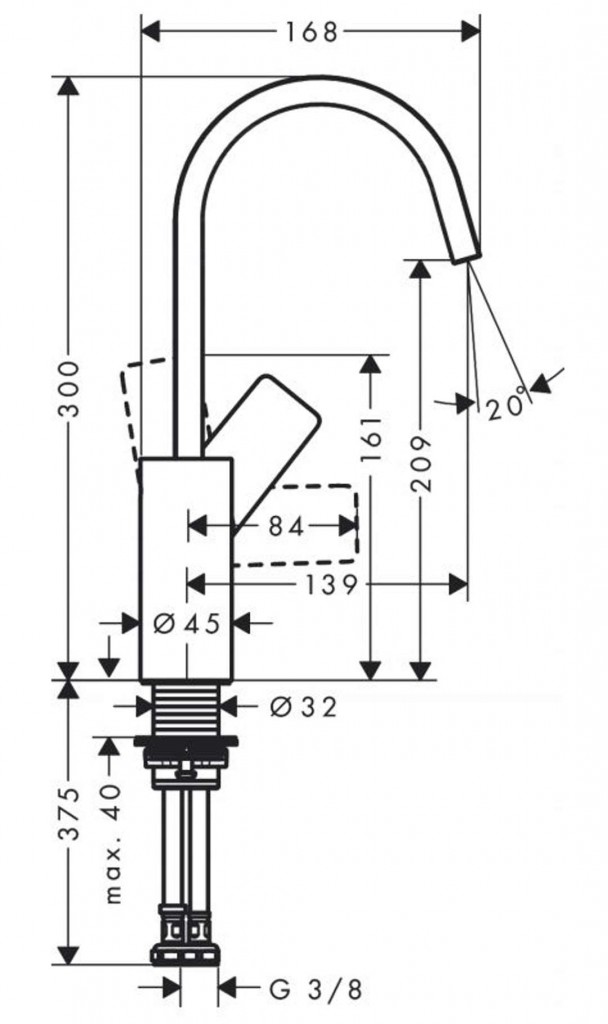 Stojanková umývadlová batéria Vivenis 210 s otočným výtokom