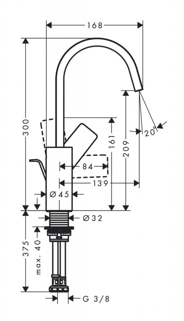 Stojanková umývadlová batéria Vivenis 210 s otočným výtokom