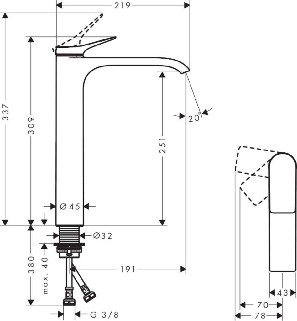 Vivenis Páková batéria 250 CoolStart pre umývadlové misy bez odtokovej súpravy