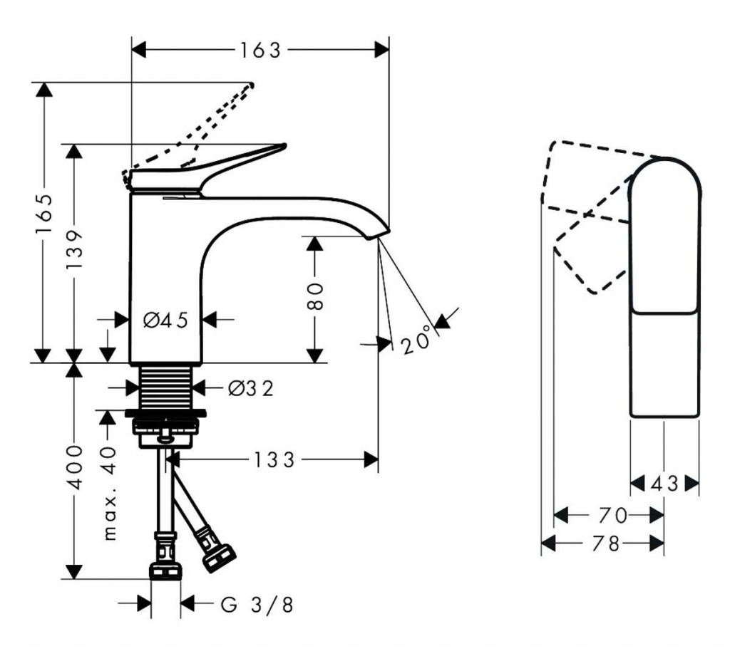 Páková umývadlová batéria 80 CoolStart, bez odtokovej súpravy