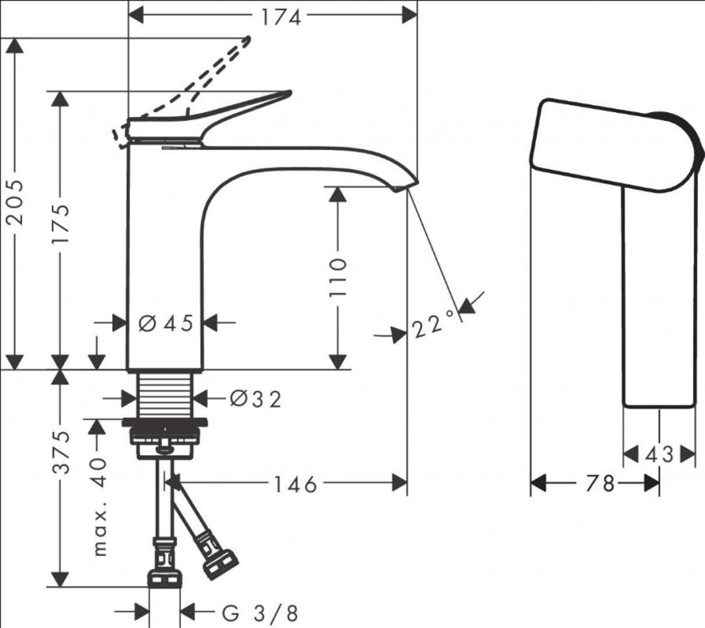 - typ pripojenia: pripojovacia hadica G 3⁄8