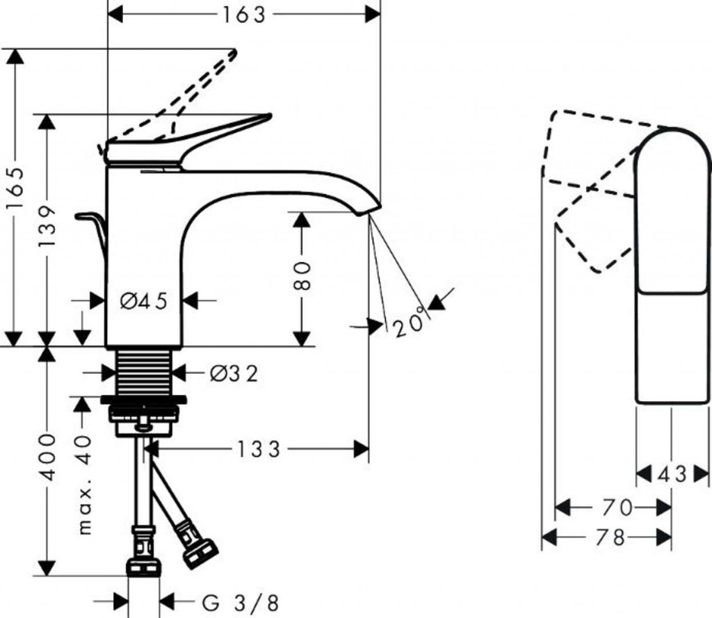 Vivenis Páková umývadlová batéria 80 CoolStart s odtokovou súpravou s tiahlom