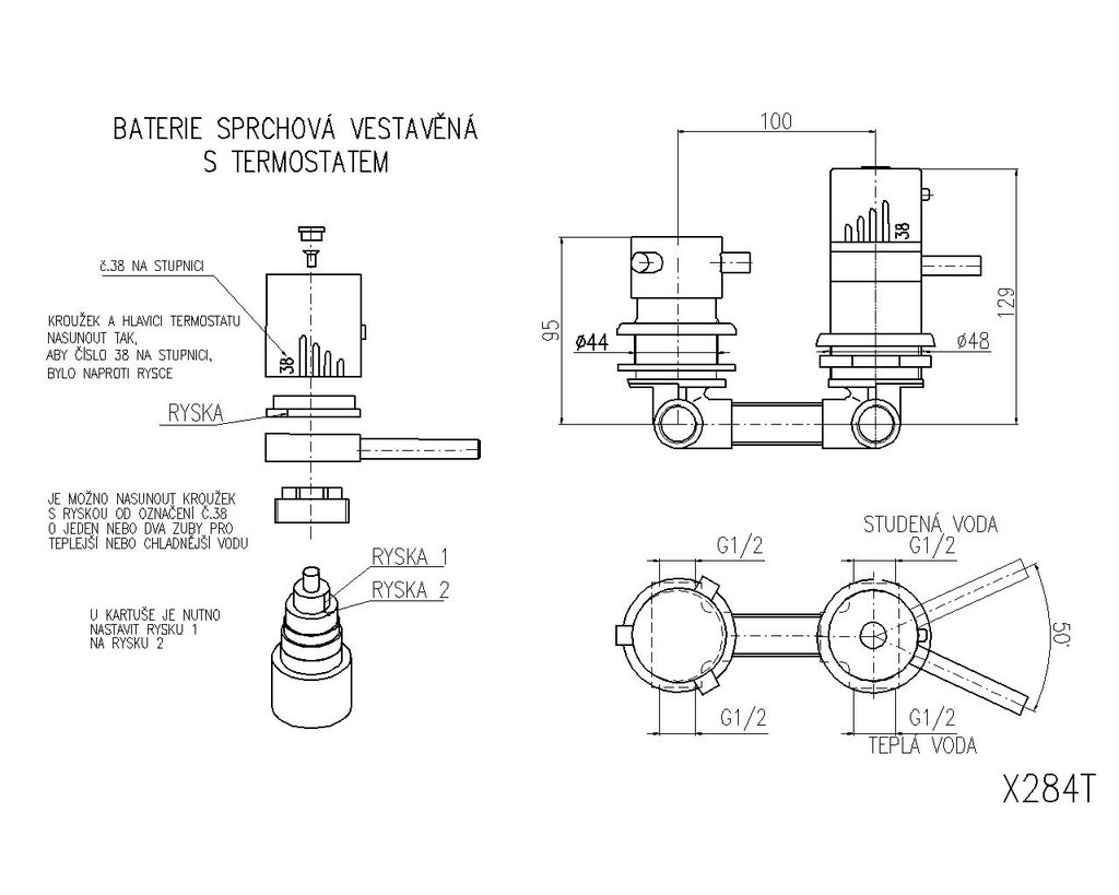 Vodovodné batérie do boxov s dvojcestným ventilom termostatická.