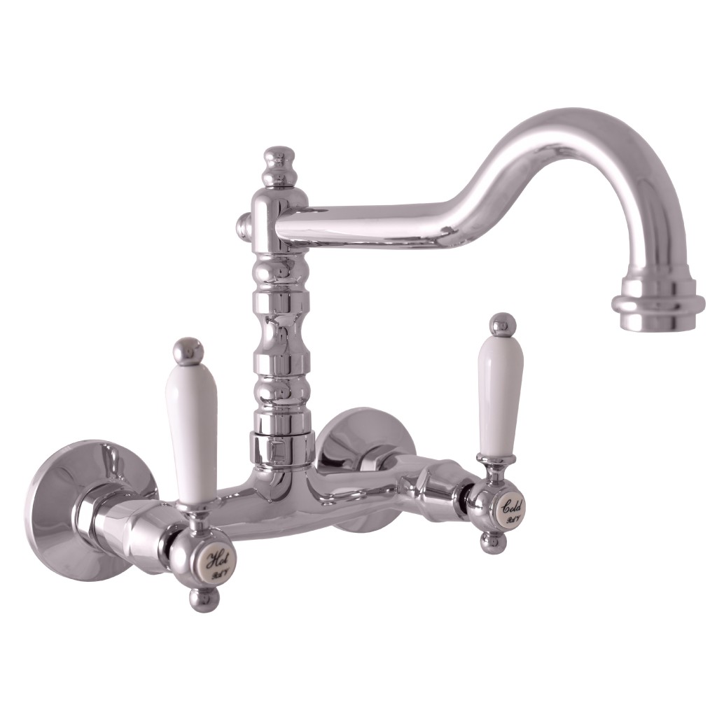 Vodovodné batérie drezová nástenná s okrúhlym otočným ramienkom.
