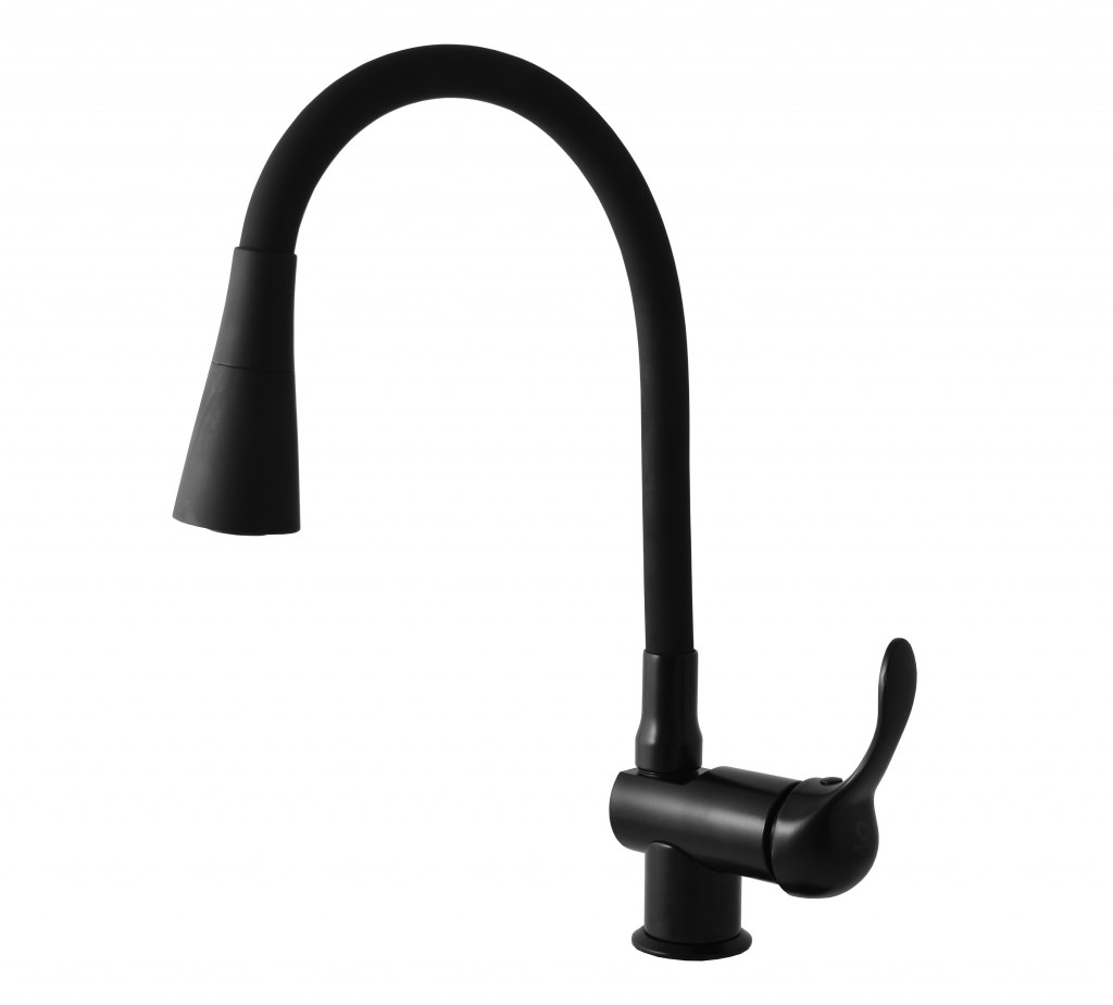 Vodovodná batéria drezová stojanková s flexibilným ramienkom so sprchou - čierna matná.
