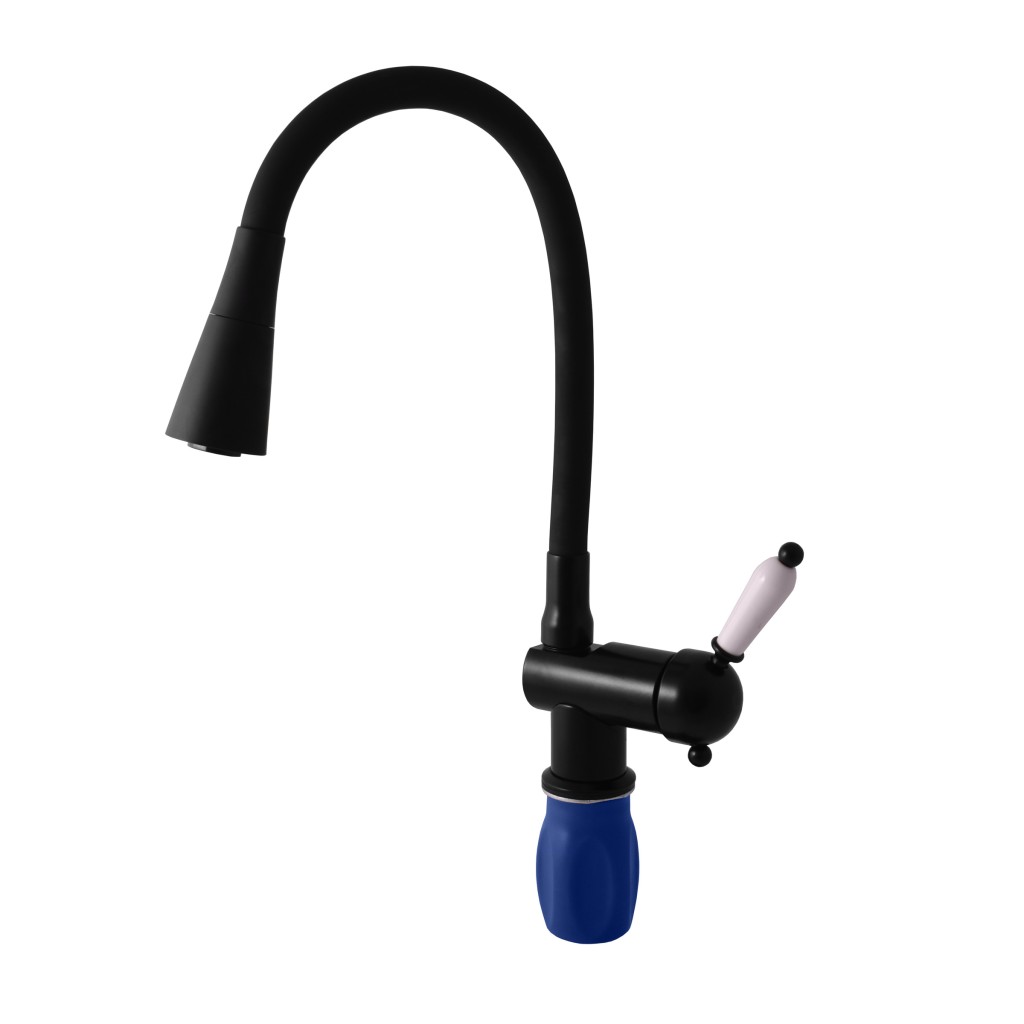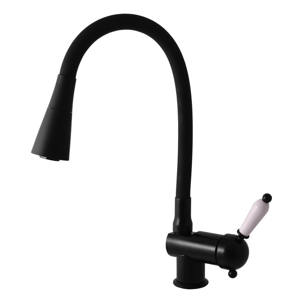 Vodovodná batéria drezová stojanková s flexibilným ramienkom so sprchou - črná matná.