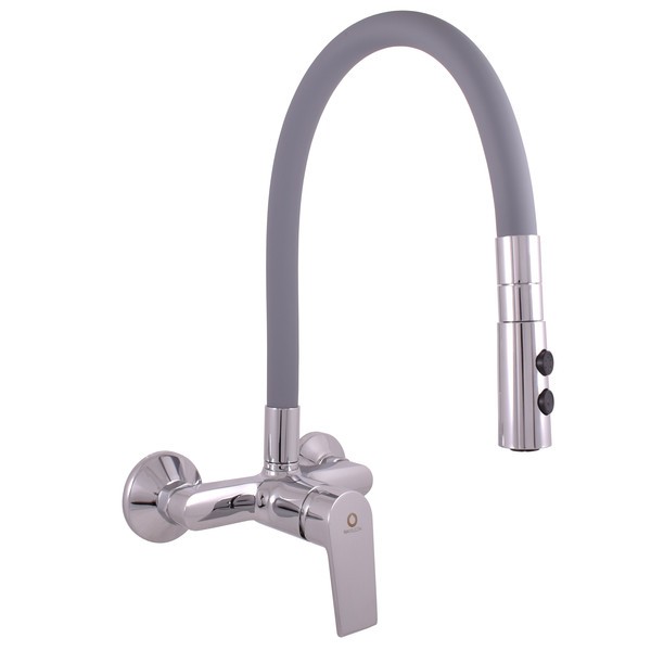 Vodovodné batérie drezová nástenná s flexibilným otočným ramienkom so sprchou.