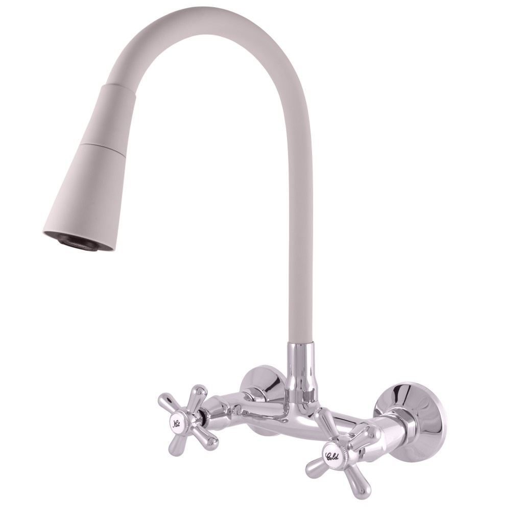 Vodovodné batérie drezová nástenná s flexibilným otočným ramienkom so sprchou.