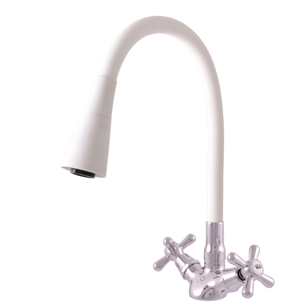 Vodovodná batéria drezová stojanková s flexibilným otočným ramienkom so sprchou.