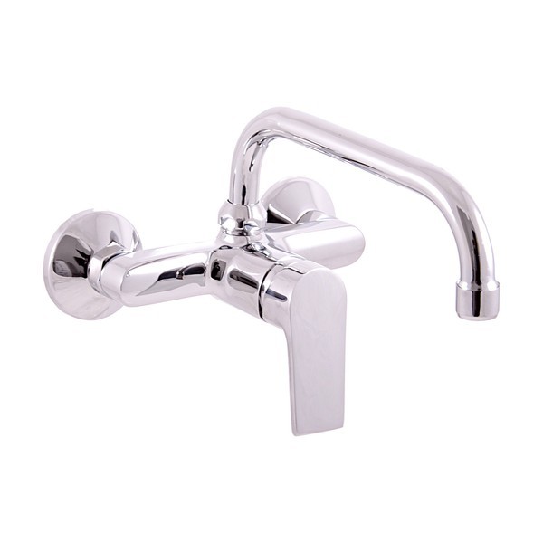 Vodovodné batérie drezová / umývadlová nástenná s okrúhlym horným ramienkom 200 mm.
