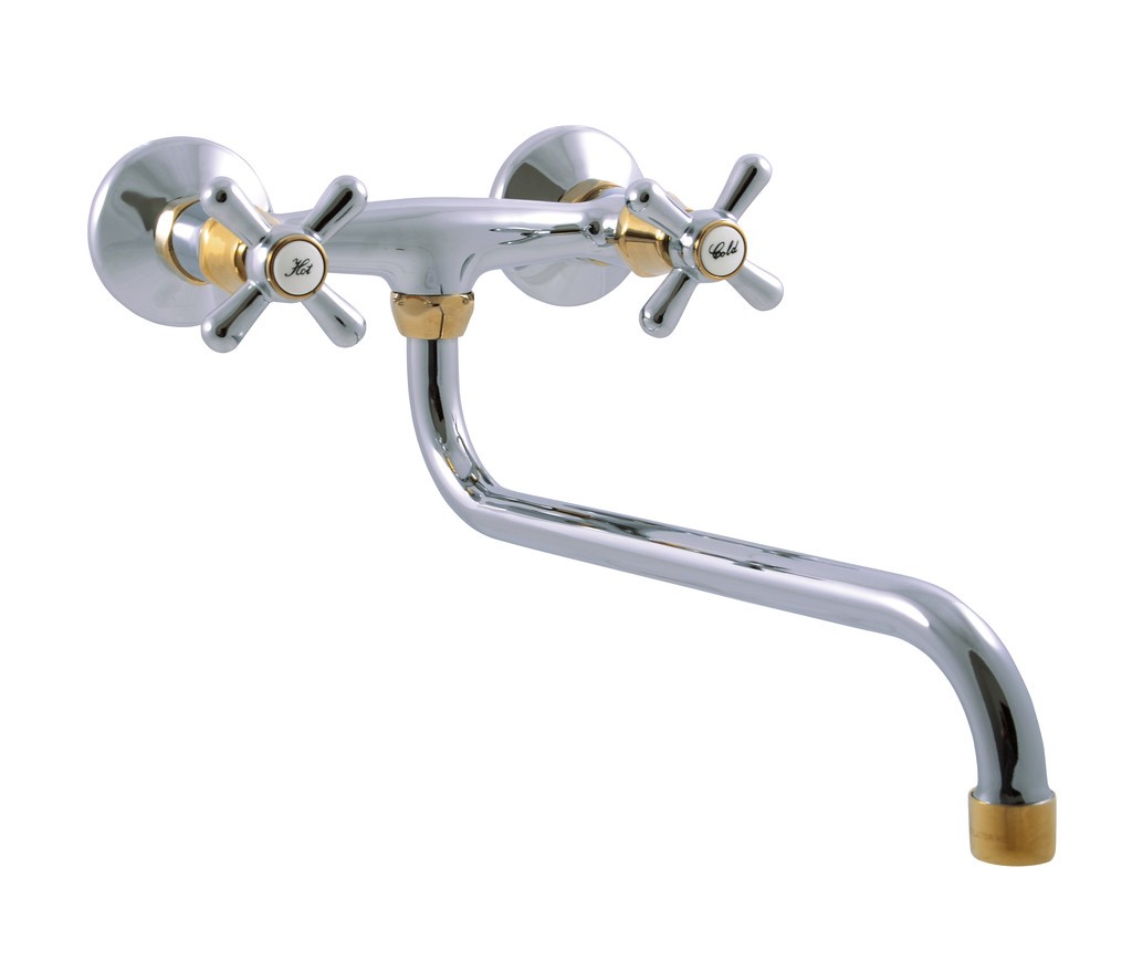 Vodovodné batérie drezová / umývadlová nástenná s guľatým ramienkom 180 mm.
