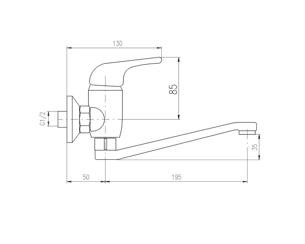 Vodovodné batérie drezová / umývadlová nástenná s plochým "S" ramienkom 195 mm.