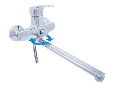 Vodovodné batérie pre vaňu a umývadlo nástenná s prepínačom v batérii a plochým ramienkom.