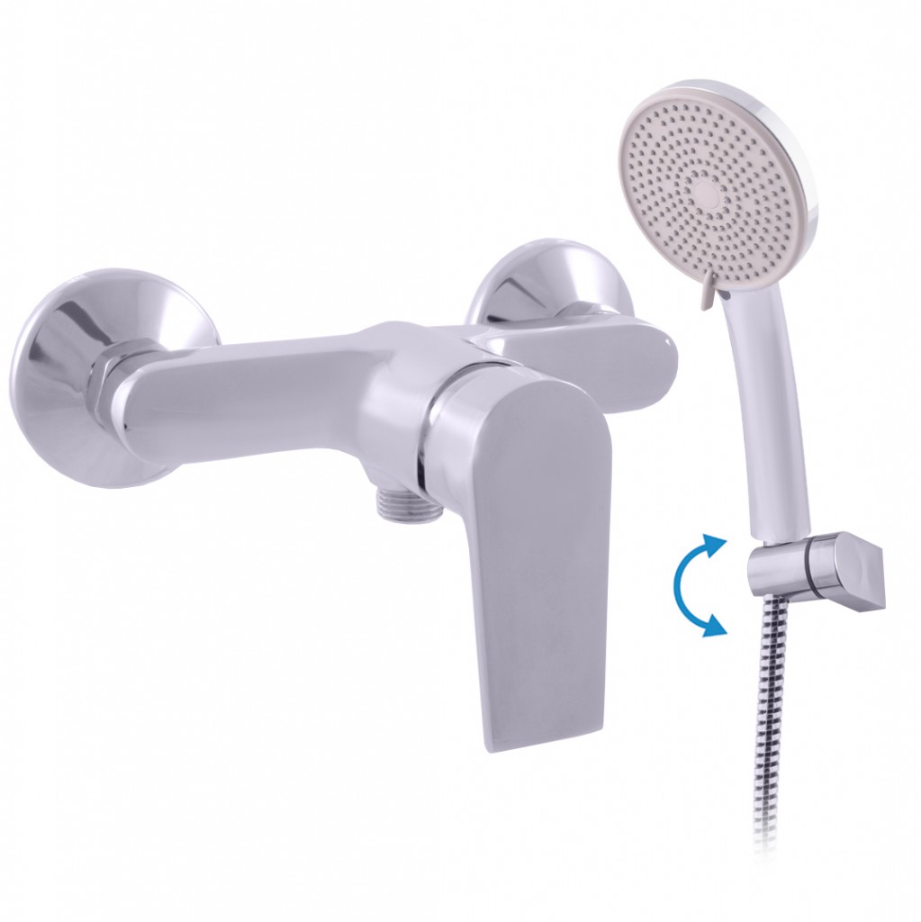 Vodovodná batérie sprchová nástenná so sprchou a otočným držiakom.