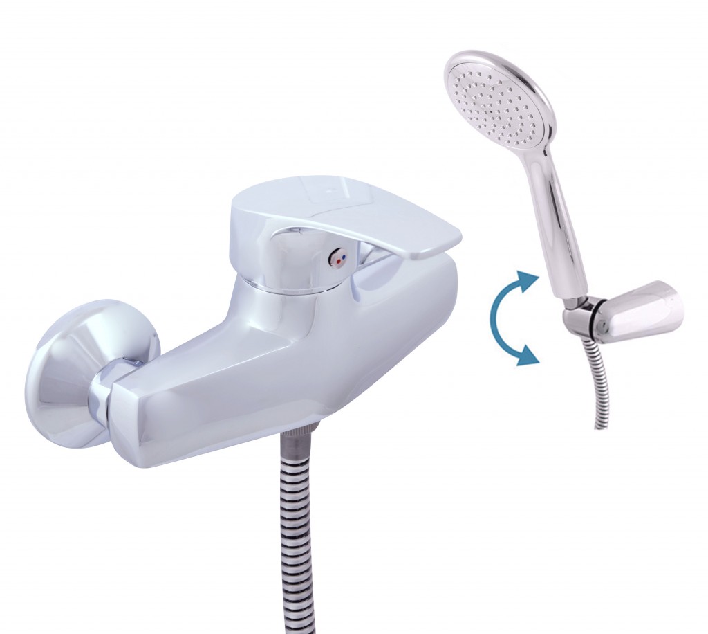 Vodovodná batérie sprchová nástenná so sprchou a otočným držiakom.