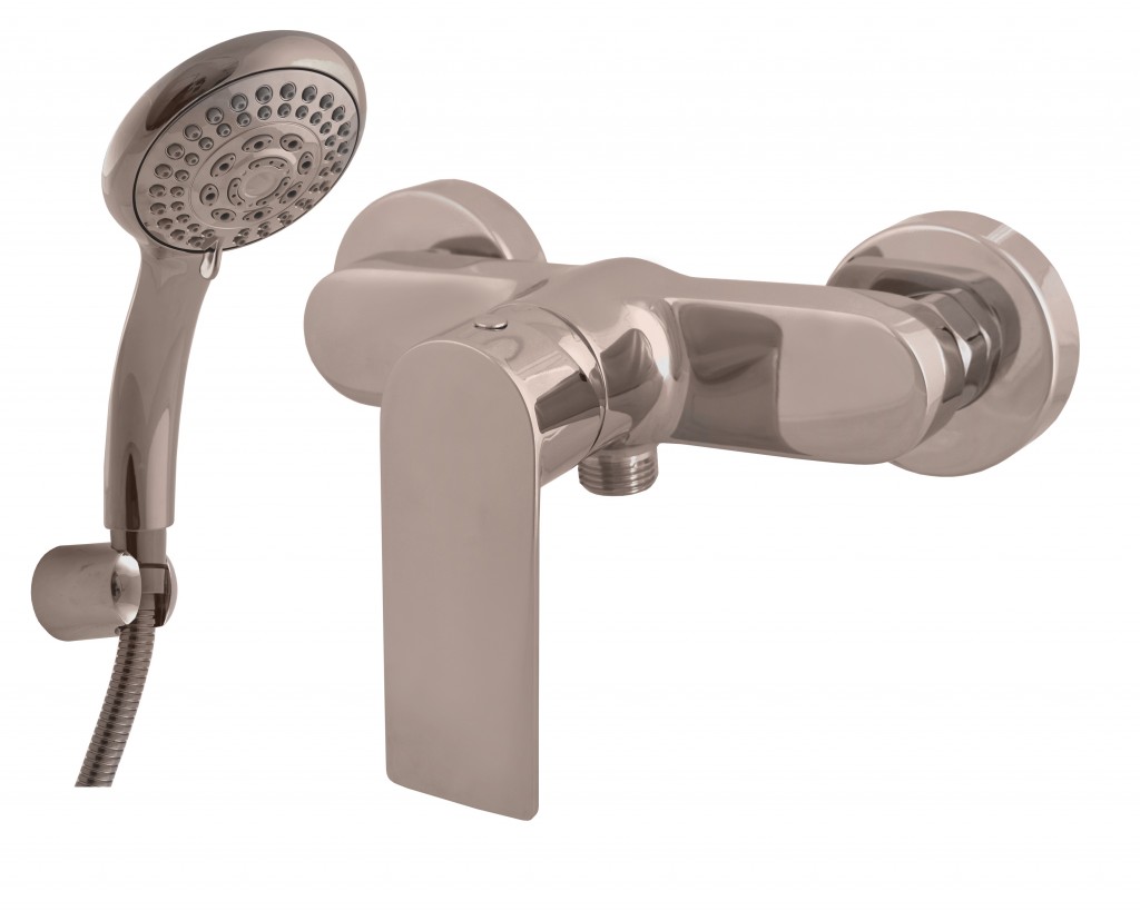 Vodovodná batéria sprchová nástenná so sprchou a pevným držiakom.
