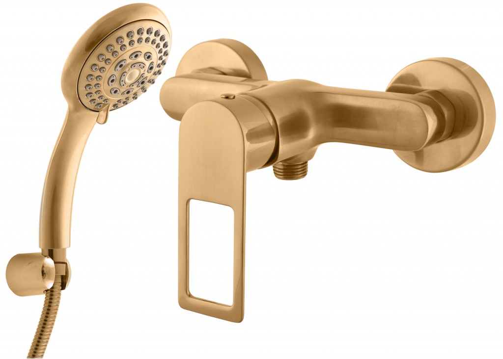 Vodovodná batéria sprchová nástenná so sprchou a pevným držiakom.
