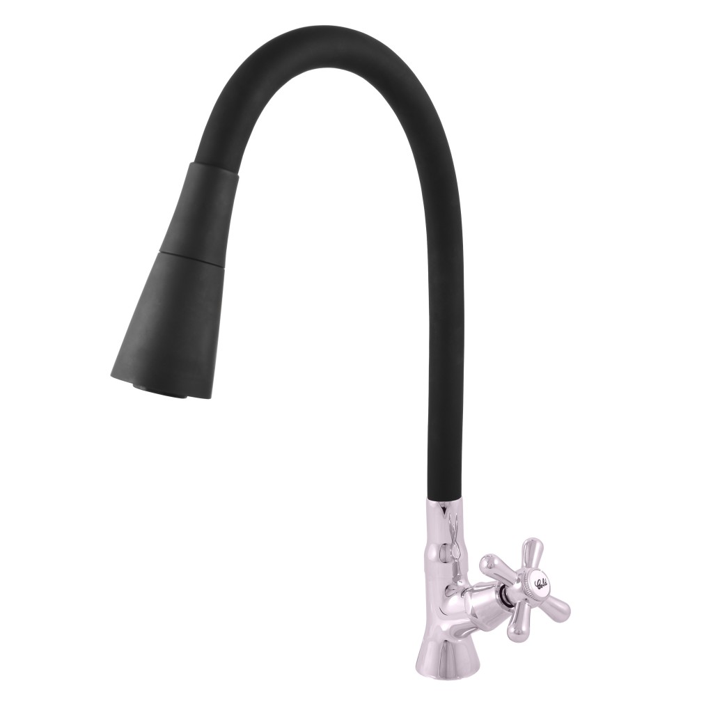 Vodovodné batérie umývadlová stojanková na jednu vodu s flexibilným otočným ramienkom so sprchou.