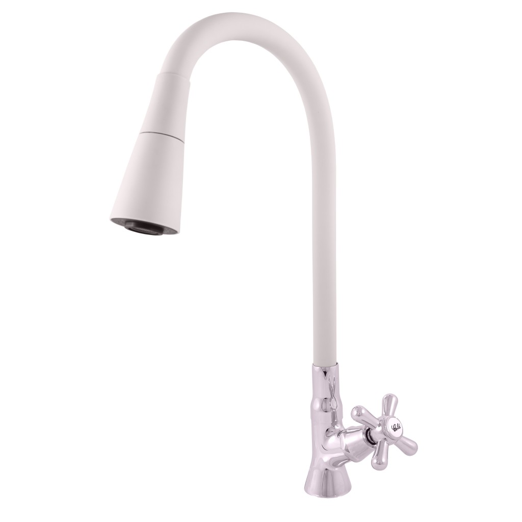 Vodovodné batérie umývadlová stojanková na jednu vodu s flexibilným otočným ramienkom so sprchou.