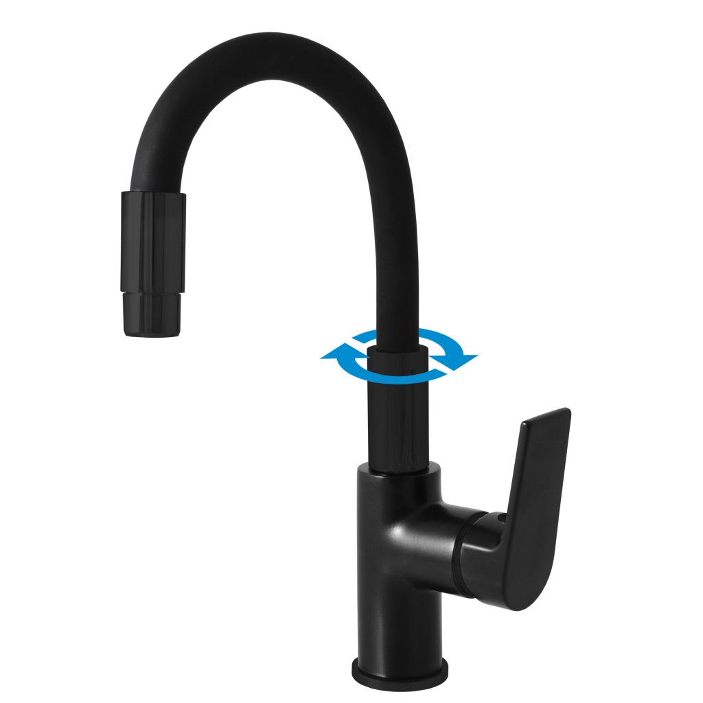 Vodovodná batéria umývadlová stojanková s flexibilným otočným ramienkom.