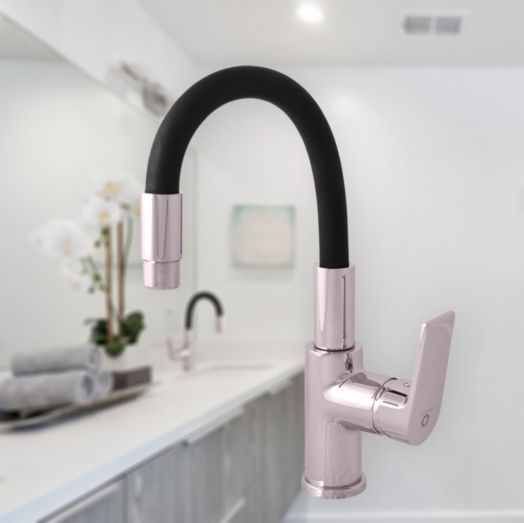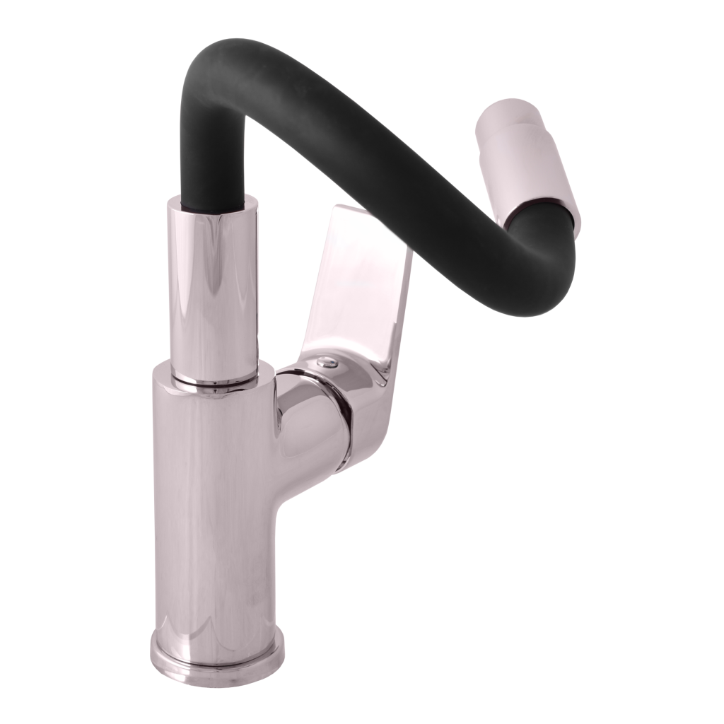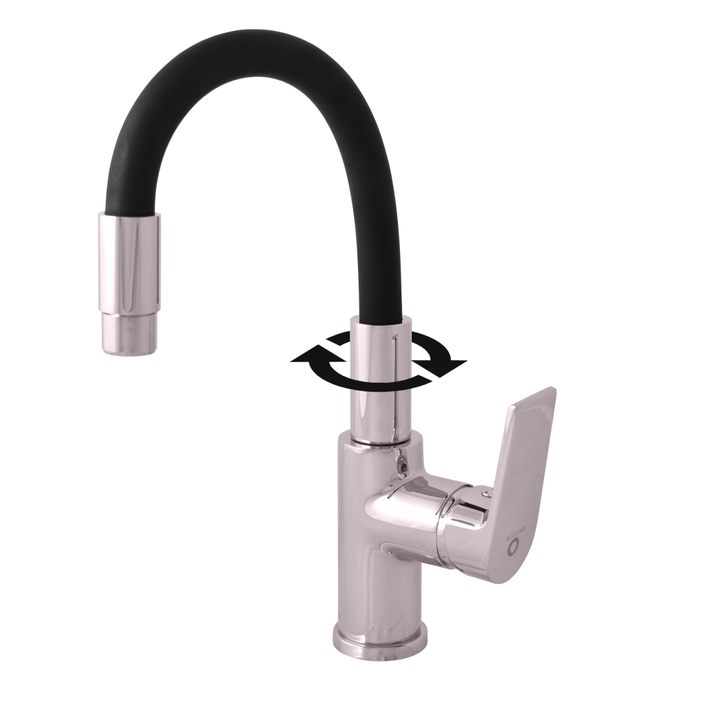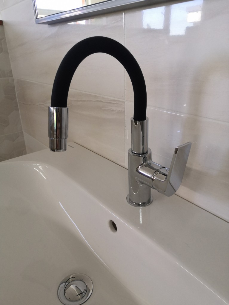 Vodovodná batéria umývadlová stojanková s flexibilným otočným ramienkom.