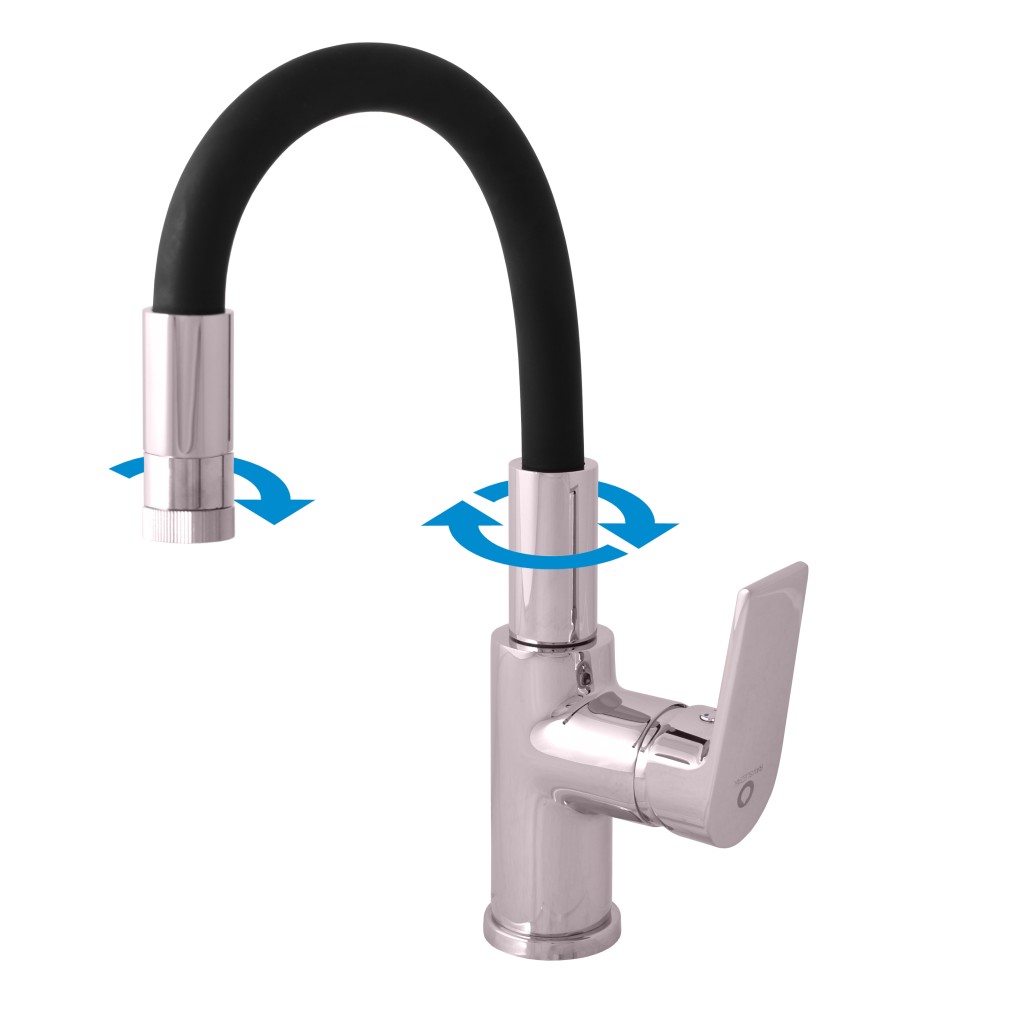 Vodovodná batéria umývadlová stojanková s flexibilným otočným ramienkom s dvojpolohovým perlátorom .