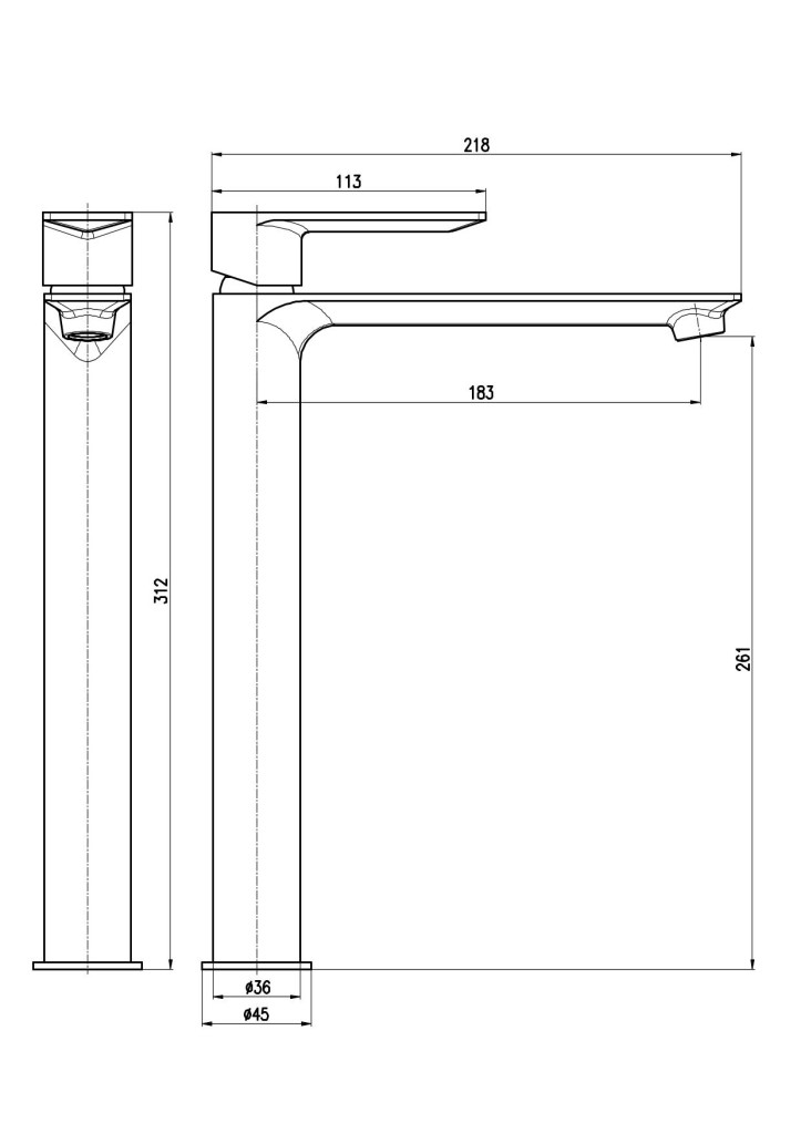 Vodovodná batéria umývadlová stojanková bez otvárania odpadu, vysoká.