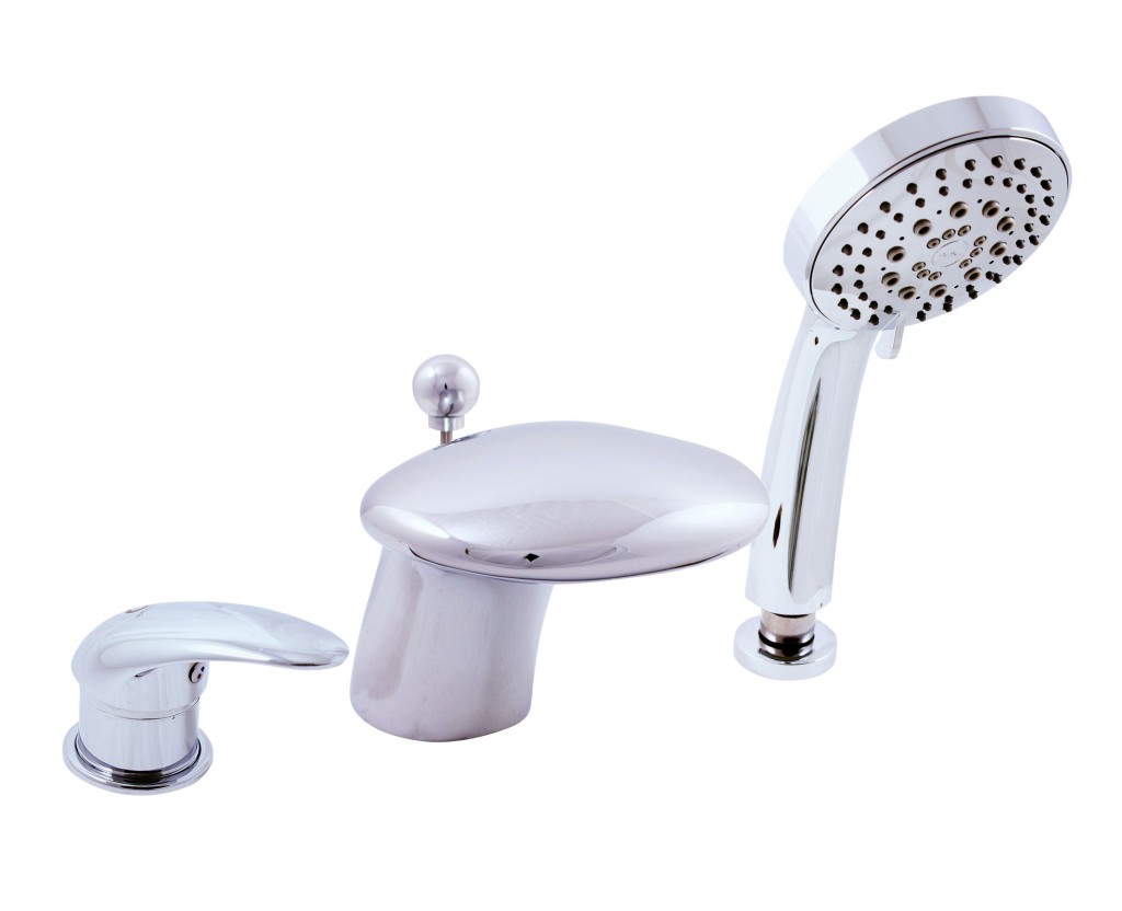 Vodovodné batérie vaňová stojanková trojotvorová s prepínačom vo výtoku, samonavíjacie sprchou a 2m hadicou.