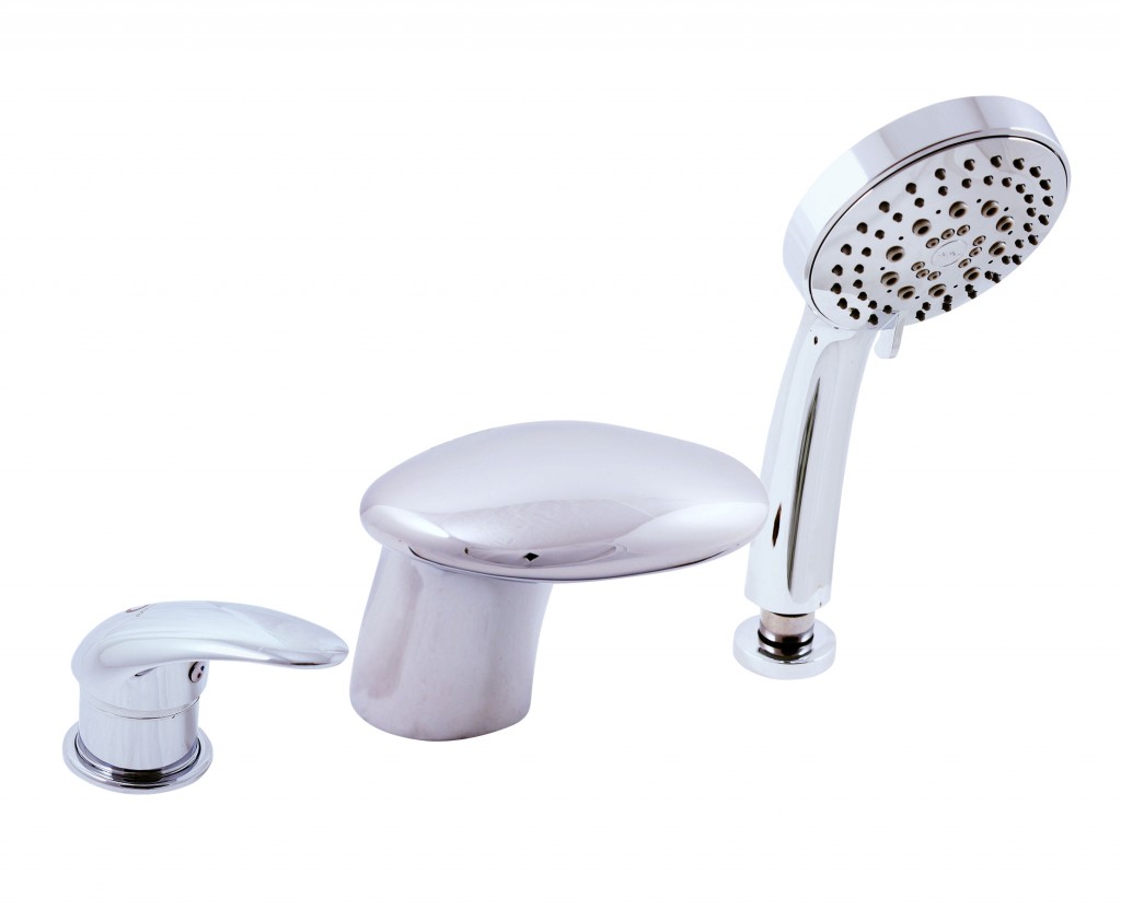 Vodovodné batérie vaňová stojanková trojotvorová s prepínačom v mixe, samonavíjacie sprchou a 2m hadicou.