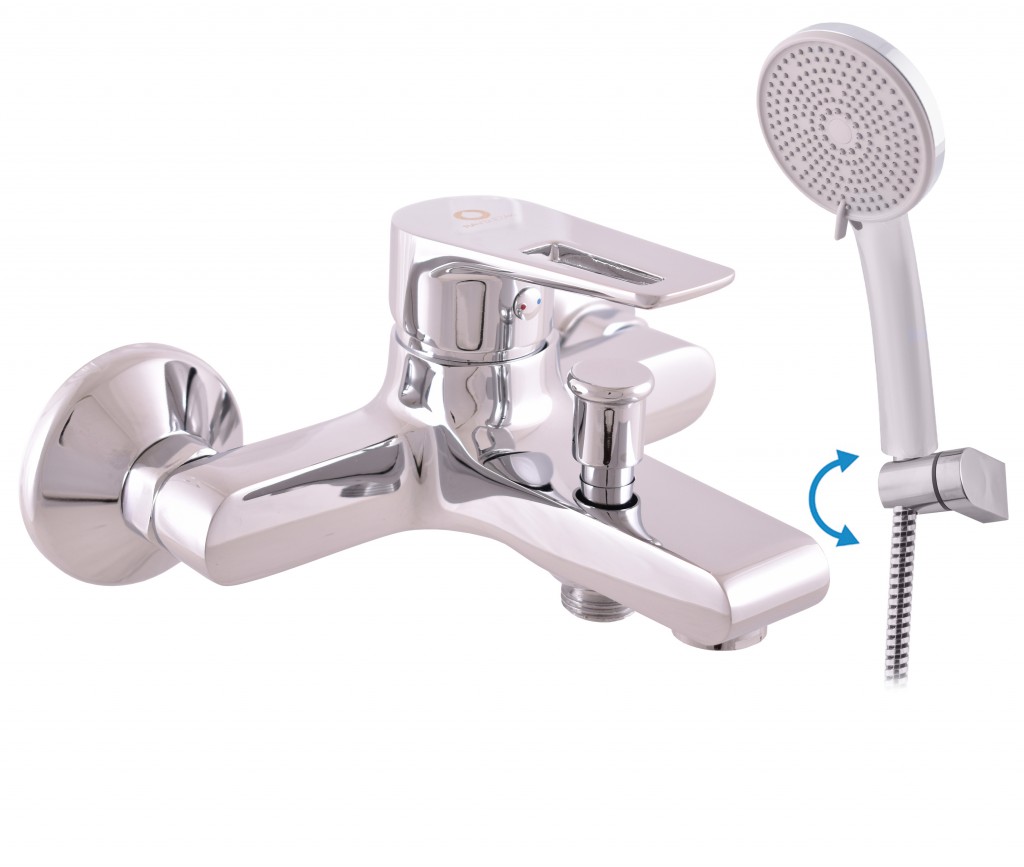 Vodovodná batéria vaňová nástenná so sprchou a otočným držiakom.