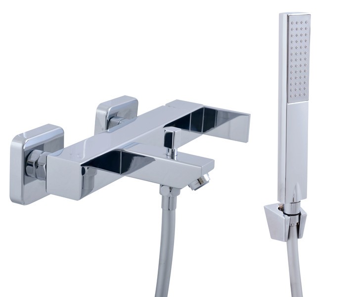 Vodovodná batéria vaňová nástenná so sprchou a pevným držiakom.