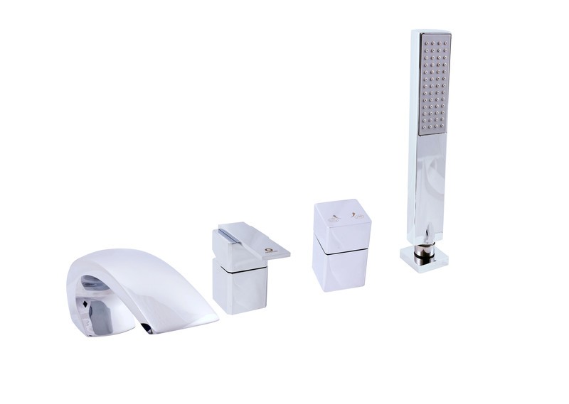 Vodovodné batérie vaňová stojánková štvorotvorová s keramickým prepínačom, samonavíjacie 2m hadicou a sprchou.
