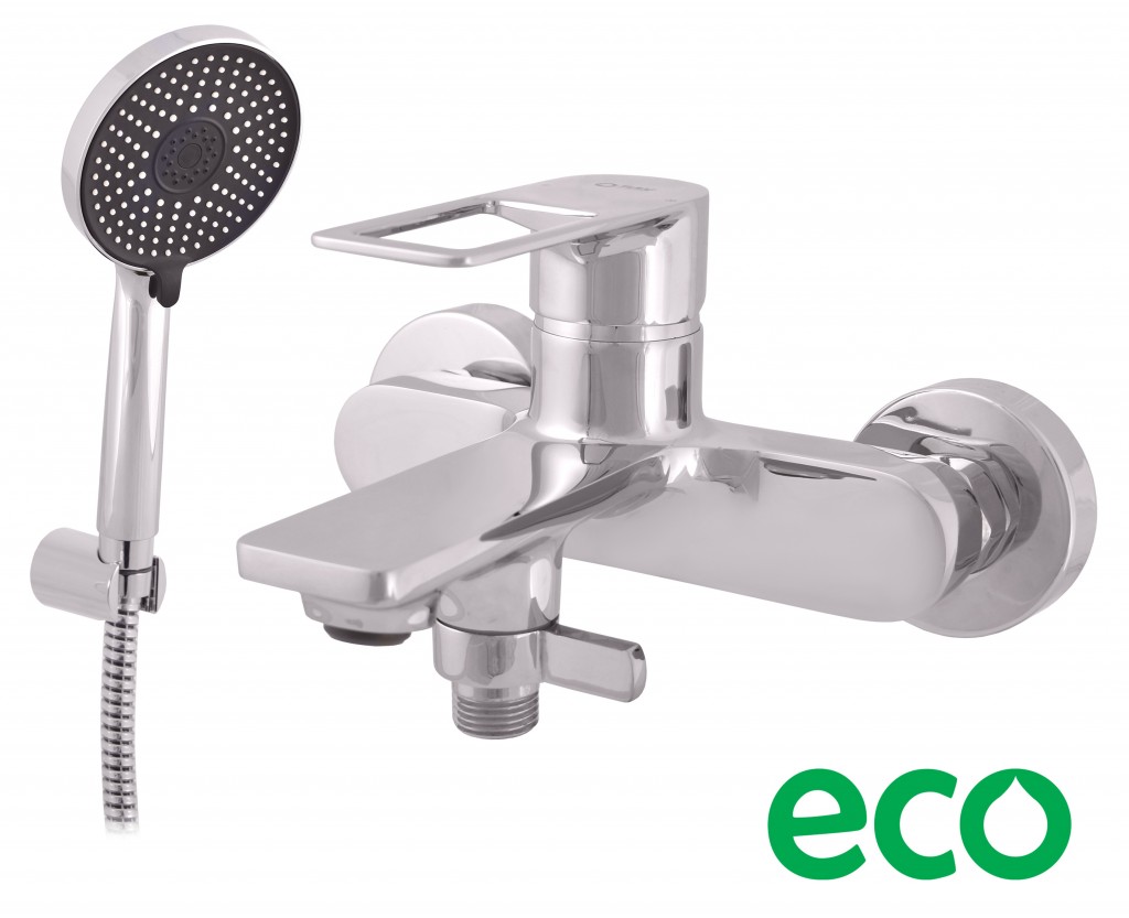 Vodovodná batéria vaňová nástenná so sprchou a pevným držiakom.