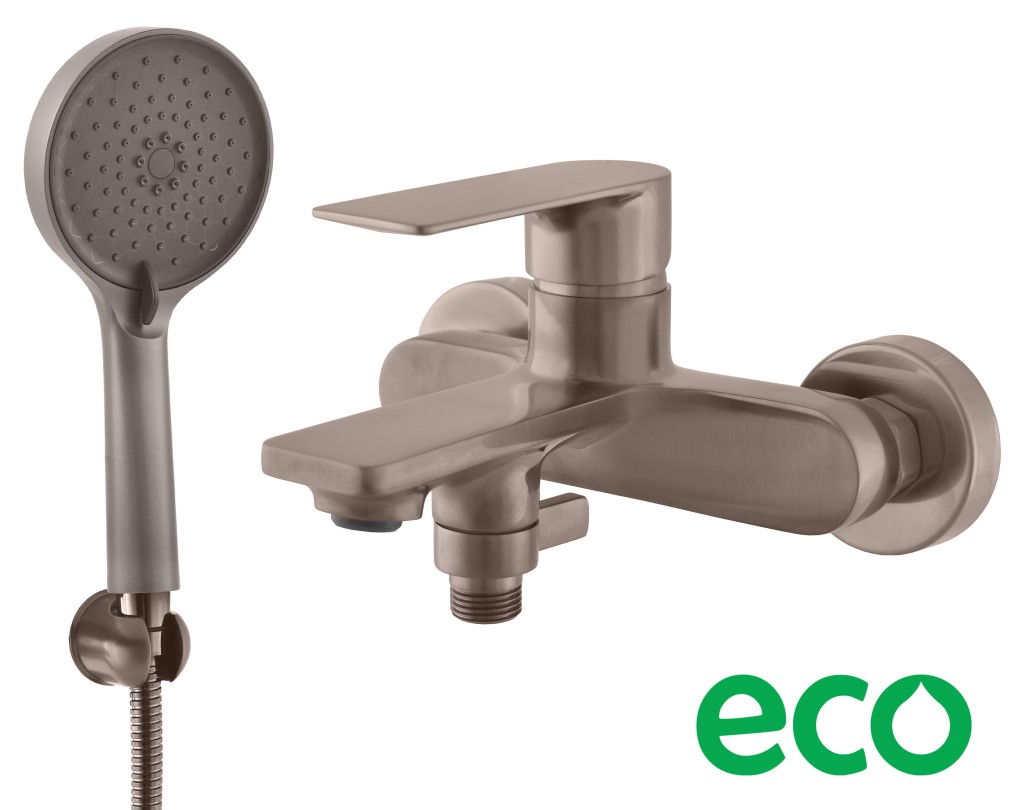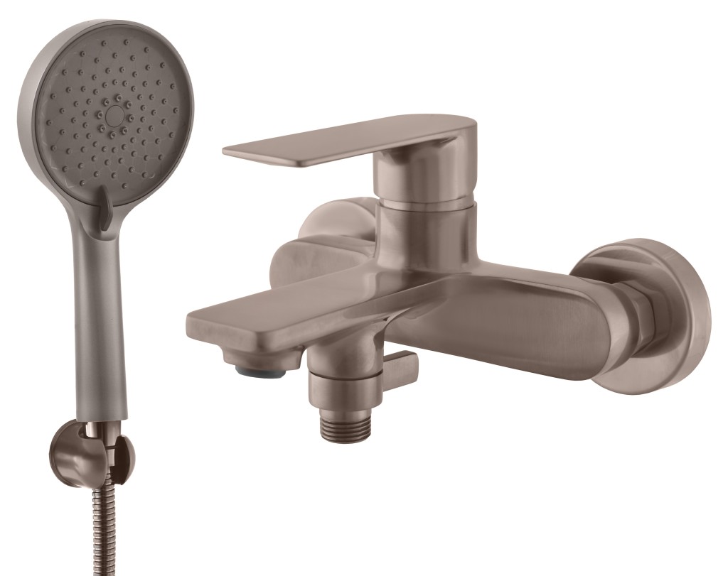 Vodovodná batéria vaňová nástenná so sprchou a pevným držiakom.