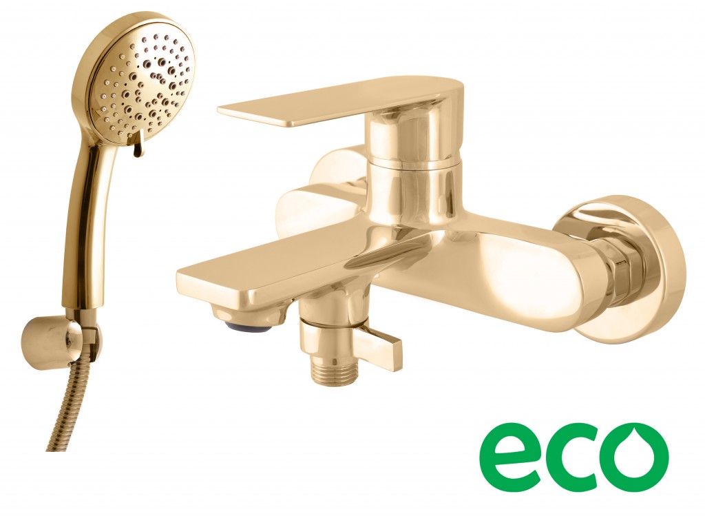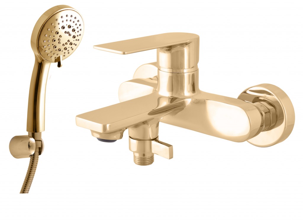 Vodovodná batéria vaňová nástenná so sprchou a pevným držiakom.