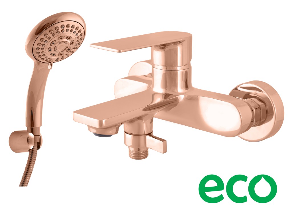 Vodovodná batéria vaňová nástenná so sprchou a pevným držiakom.
