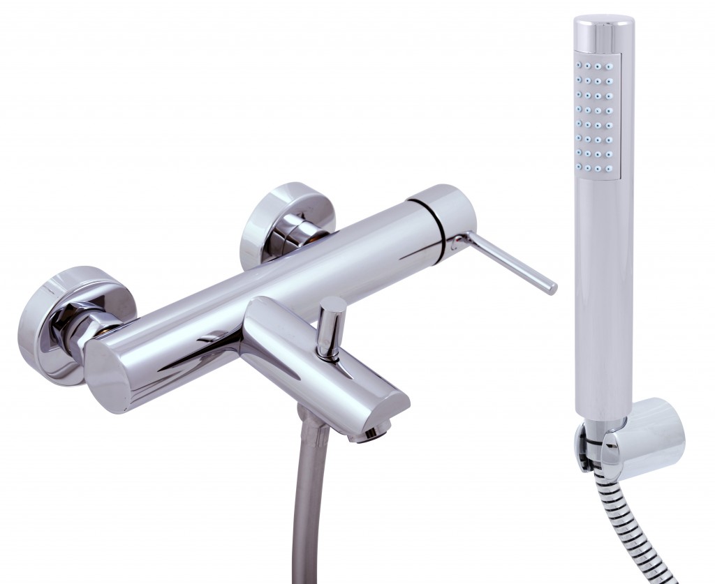 Vodovodná batéria vaňová nástenná so sprchou a pevným držiakom.