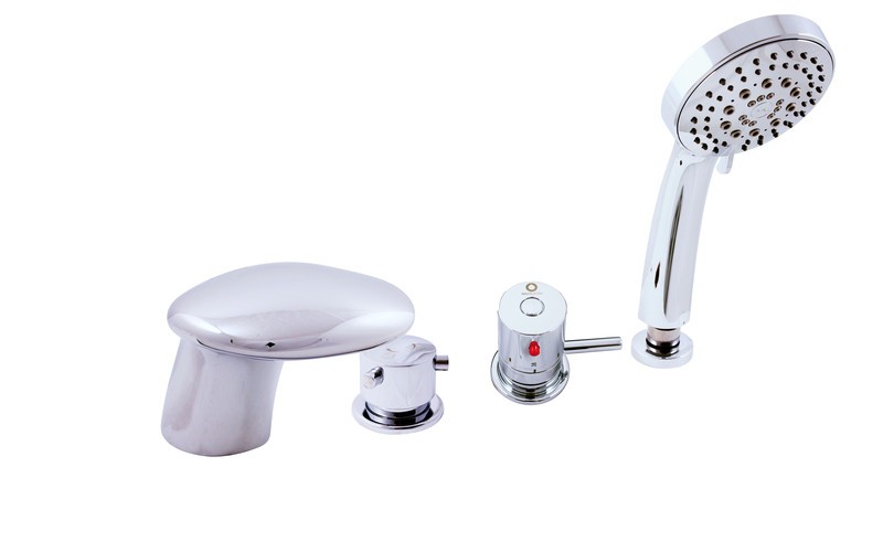 Vodovodné batérie vaňová stojánková termostatická štvorotvorová s keramickým prepínačom, samonavíjacie 2m hadicou a sprchou.