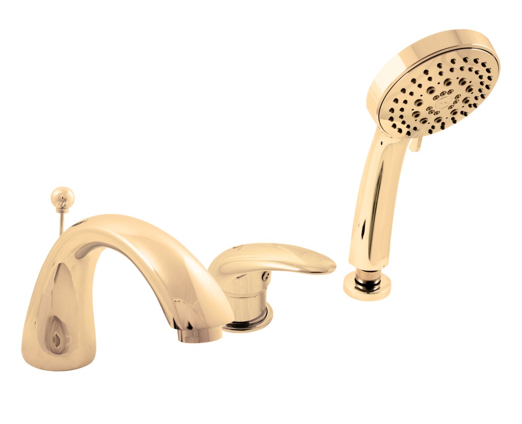 Vodovodné batérie vaňová stojanková trojotvorová s prepínačom vo výtoku, samonavíjacie sprchou a 2m hadicou.