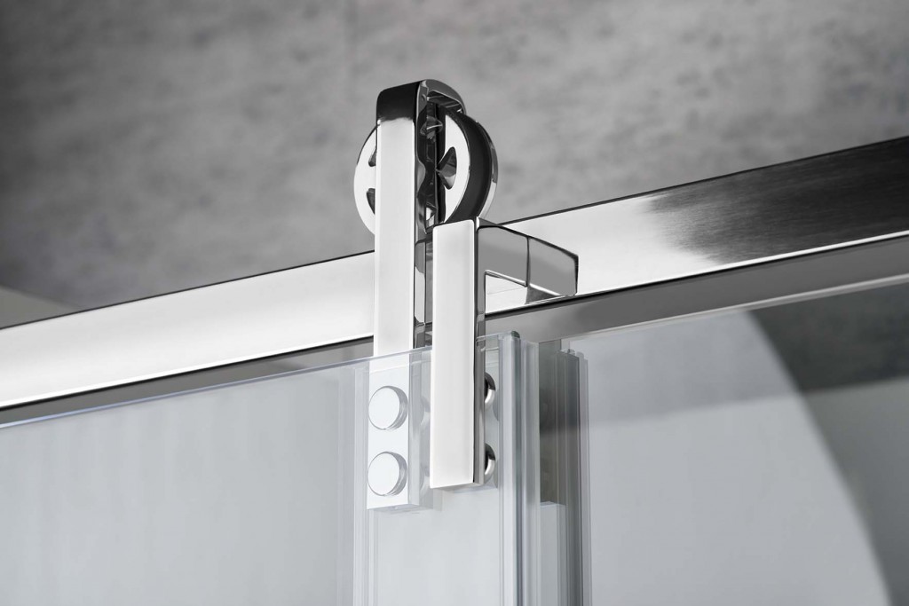 | Lúkoťové kolesá sú výrazným prvkom zásteny. Umocňujú jej osobitý dizajn a zároveň zaručujú bezchybný posuv dverí. | Do vodiaceho dielu, ktorý usmerňuje pohyb dverí, je napojená pretoková lišta. Konštrukcia tak umožňuje pohodlný vstup. | Elegantné madlo je vhodným doplnkom tejto modernej zásteny a zároveň uľahčuje komfortné otváranie dverí. |
